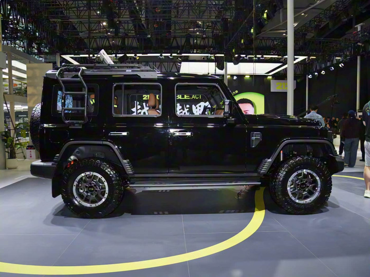 再来看车身侧面部分,车身收受经典的方盒子造型,线条硬朗,轮眉隆起,力量感全齐。尺寸方面,长度4749毫米、宽度1945毫米、高度1999毫米,轴距2860毫米,确保了盛大的里面空间和邃密的通过性。细长型外后视镜镌汰了车身宽度,便于在狭小地形中穿行。侧踏板和防脱圈轮辋是标配,搭配285/70 R17规格的越野轮胎,单条承重达1450公斤,合适高强度越野需求。新增的侧置爬梯和车顶行李架彭胀了装备承载材干,而青苍绿等专属配色擢升了辨识度,兼顾功能性与个性化抒发。