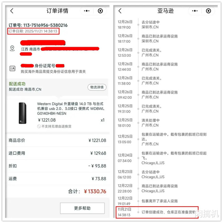11月21日显露仓库备货,等了一个月没动静,我皆破防了,再不寄我就要报警了(苦笑)。完毕亚马逊似乎听到我的招呼,终于在12月22日从芝加哥寄出来了,到广州清关后转寄顺丰,一天后我就收到了。