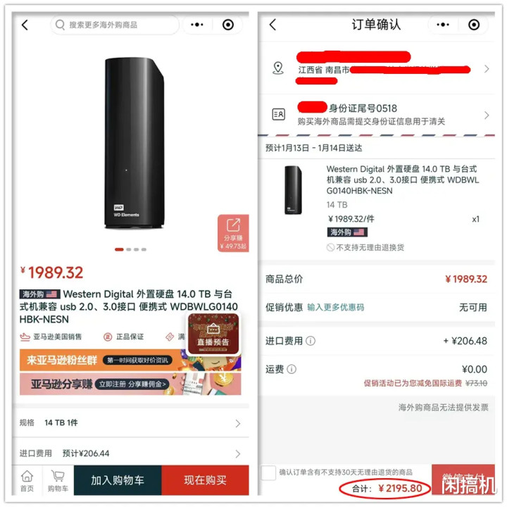 临了这硬盘今天涨到了1989.32元,加上206.48元的入口用度,总老本要2195.8元。还好闲鱼那里许多“黄牛”转卖涨价不狠,最低1400元就能买到全新原封,等消化完这一批,猜测来岁就买不到这样低廉的大硬盘了。