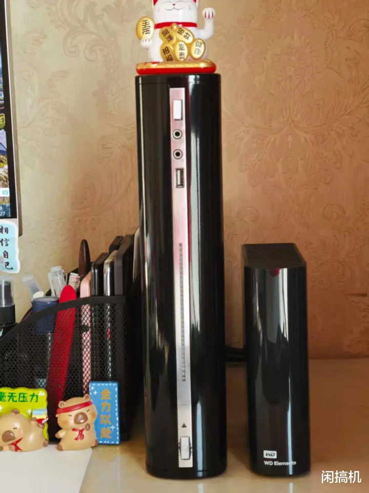 天然是用纸袋子套着寄来的,但我气运可以,包装盒八角尖尖,莫得粉碎,更没出现之前沸沸扬扬的调包。这是一个桌面搬动硬盘,外壳是钢琴烤漆材质,配件有12V/1.5A电源和USB 3.0扁口数据线。
