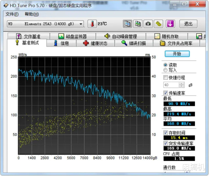 实测读取速率平均168.8MB/s,最高速率为219.4MB/s,许多东谈主说这是企业左迁盘,虽标称是7200转,但实质传输完毕跟5400转差未几,这我无所谓,我是拿来当仓库盘用的。