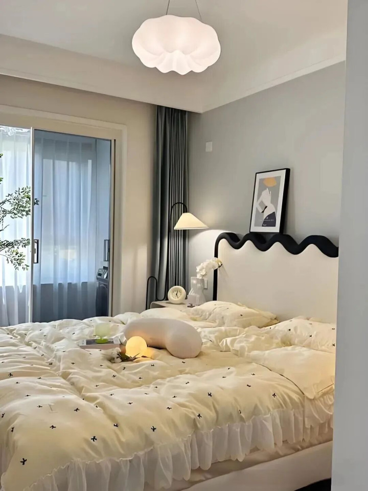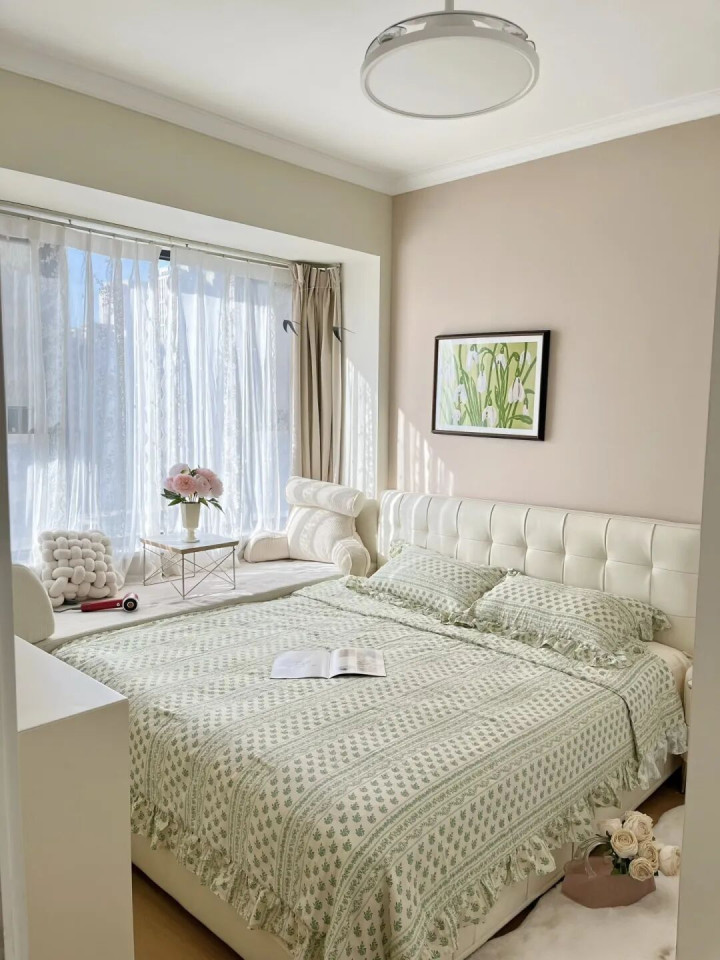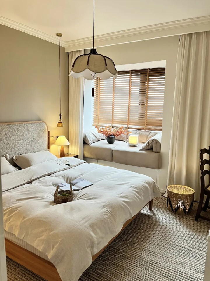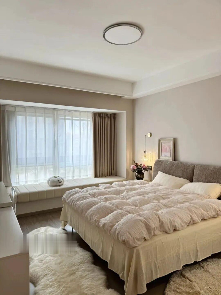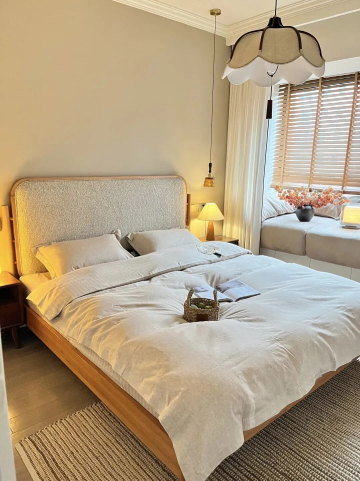 是以啊,大床虽好,可别让卧室“透不外气”。否则,每天睁开眼,“一床挤满卧室”的压迫感,果真不太惬意。