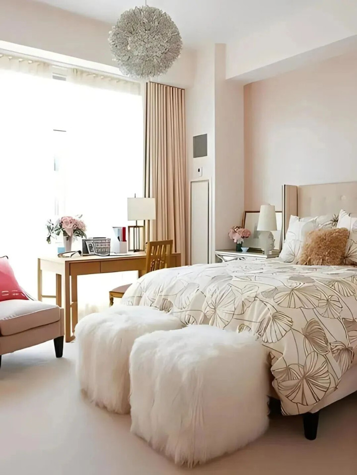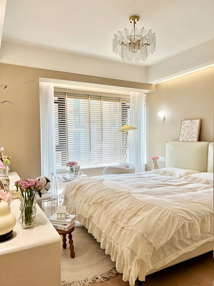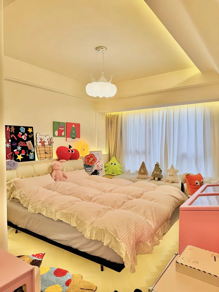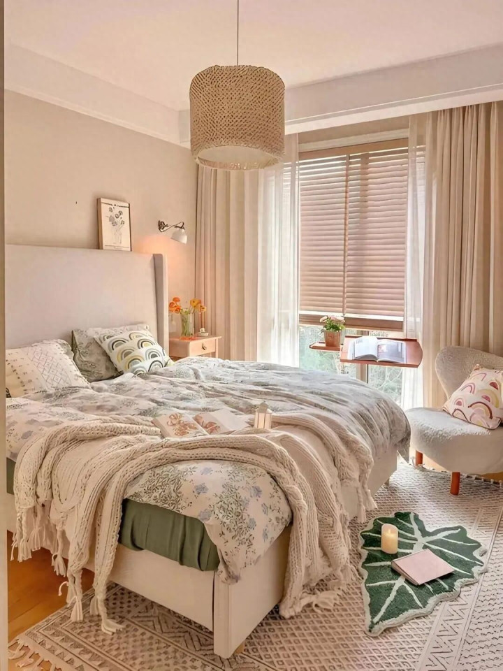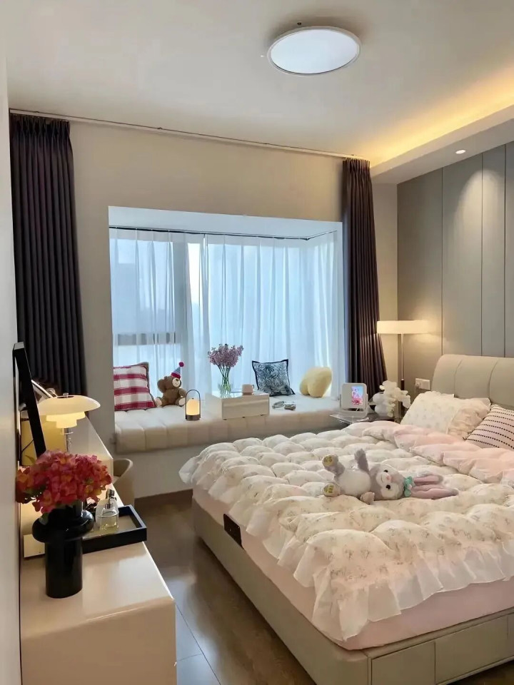 是以啊,大床虽好,可别让卧室“透不外气”。否则,每天睁开眼,“一床挤满卧室”的压迫感,果真不太惬意。
