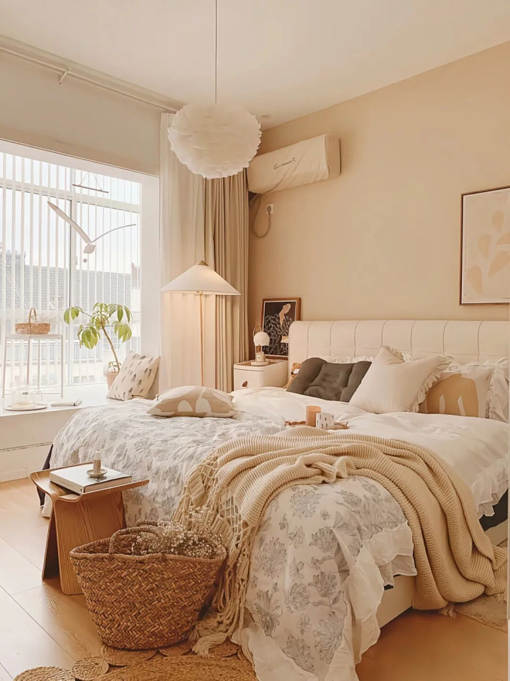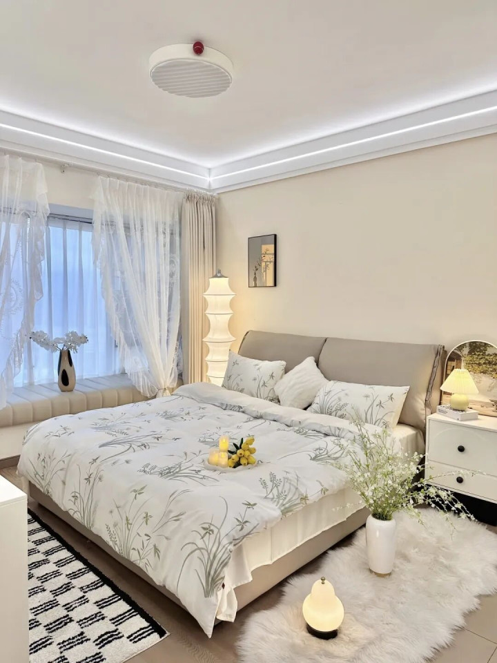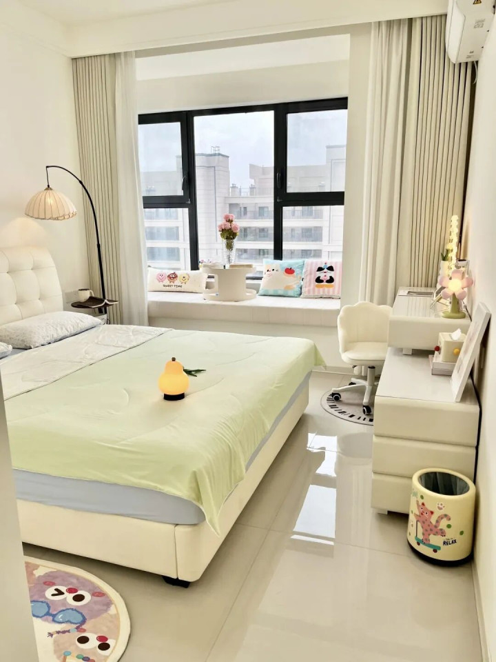 但!买床前,最佳先拿尺子量量卧室的尺寸,一般来说,“床宽+80cm”是卧室的空间底线,否则衣柜门打不开,那画面太“社死”了。